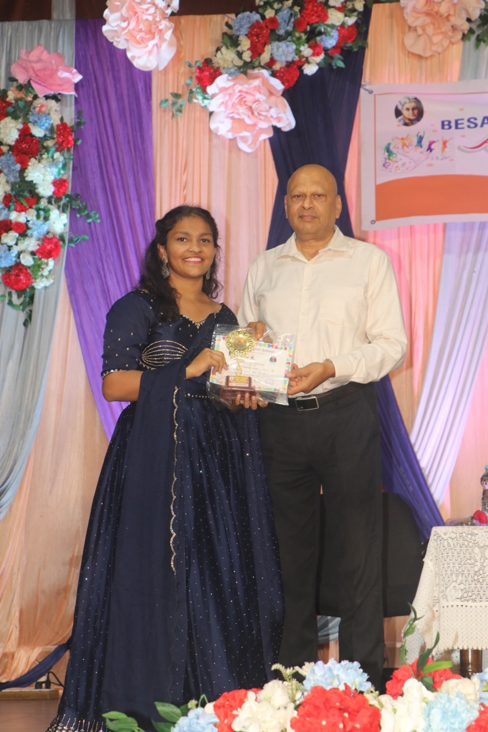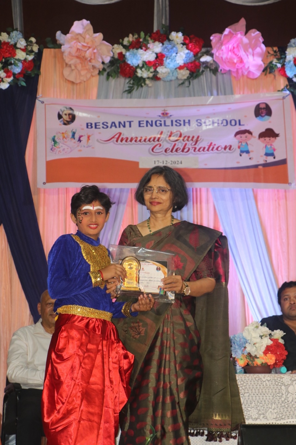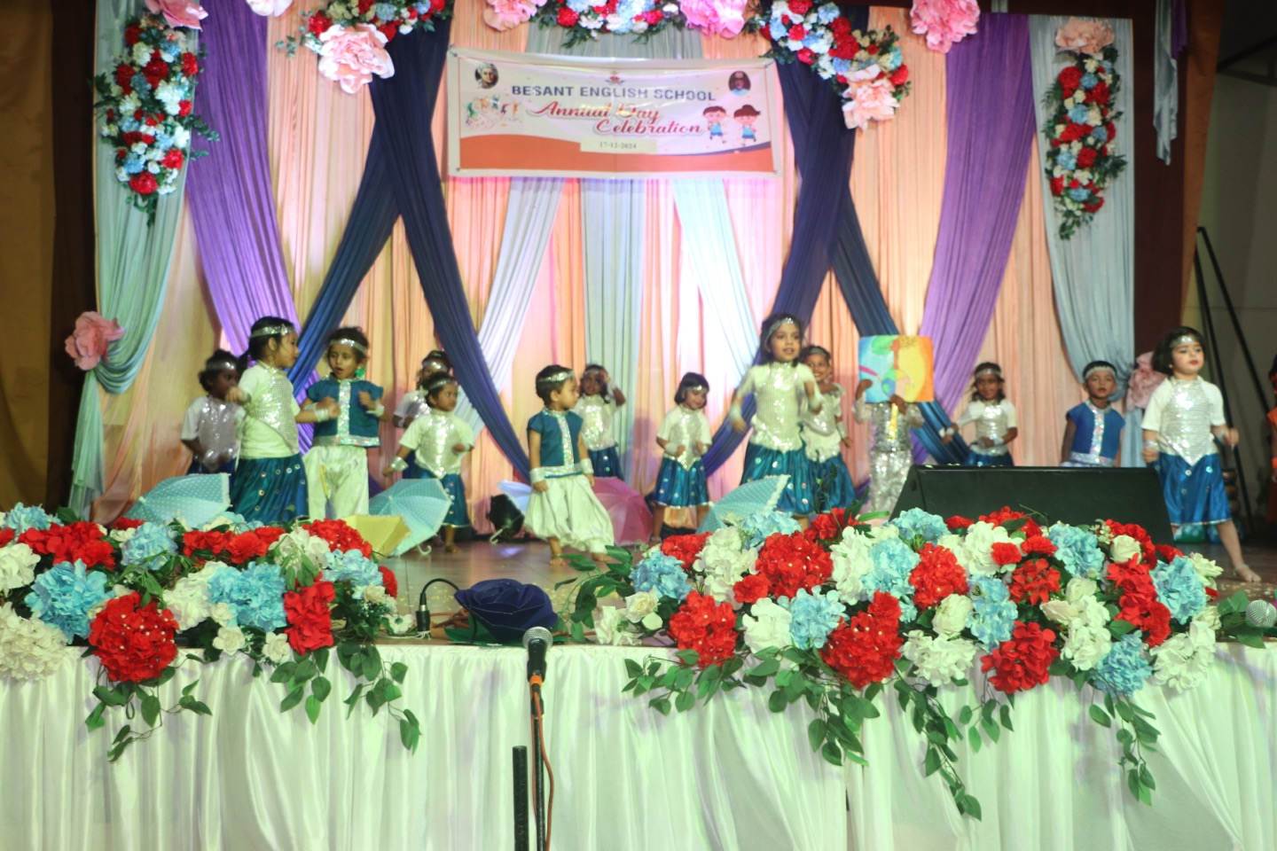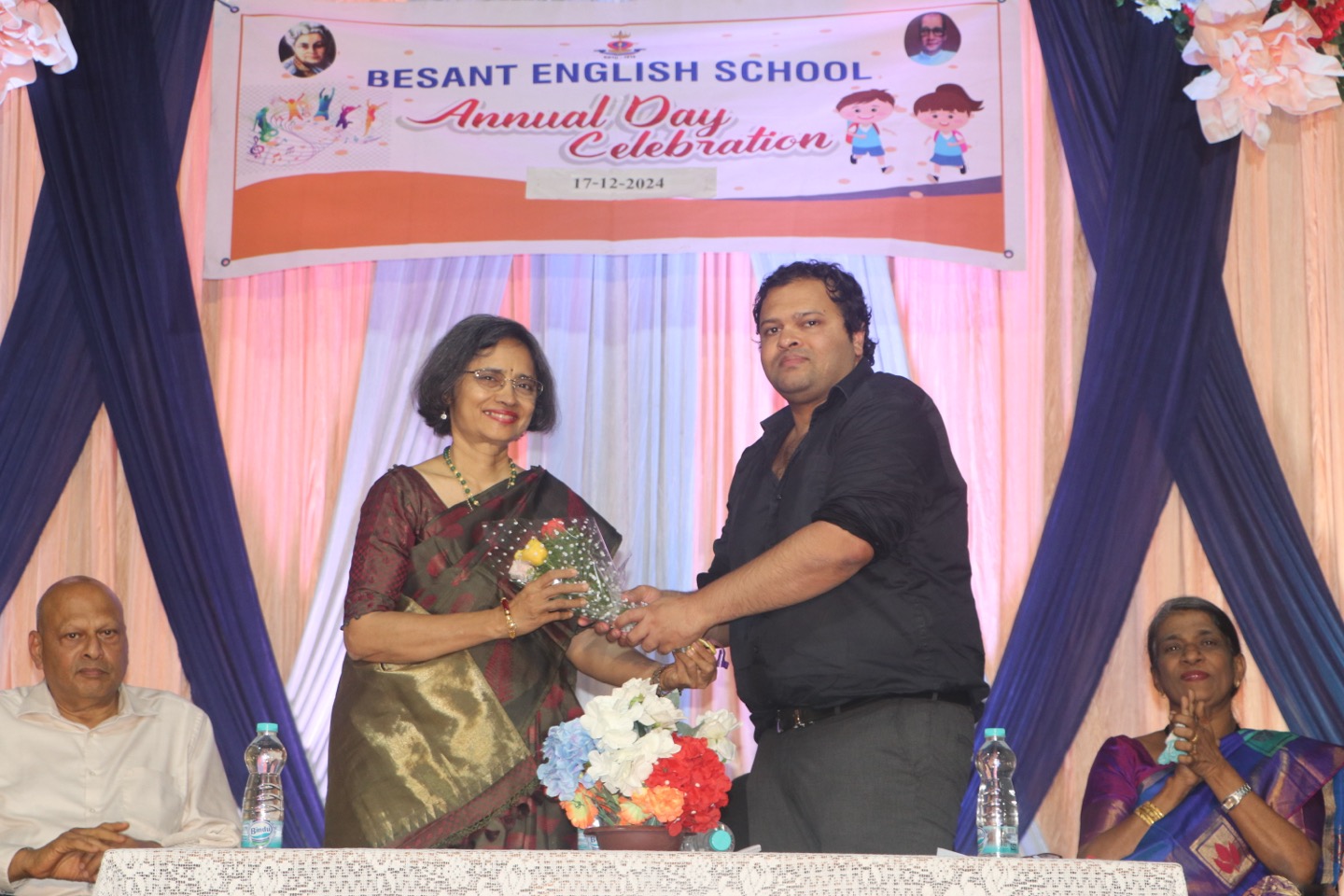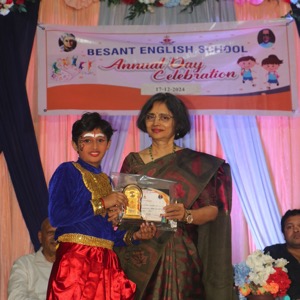 The annual day function of Besant English Medium School was celebrated on December 17th, 2024, with tremendous enthusiasm. The event began with prayer. Dr. Manel Arjun Nayak, the convenor of the school, greeted everyone. Headmistress Laveena Albert presented the school report. Chief guest, Dr. Nutan Kamath, gave away the prizes, and inspire the audience with a benefitting message.