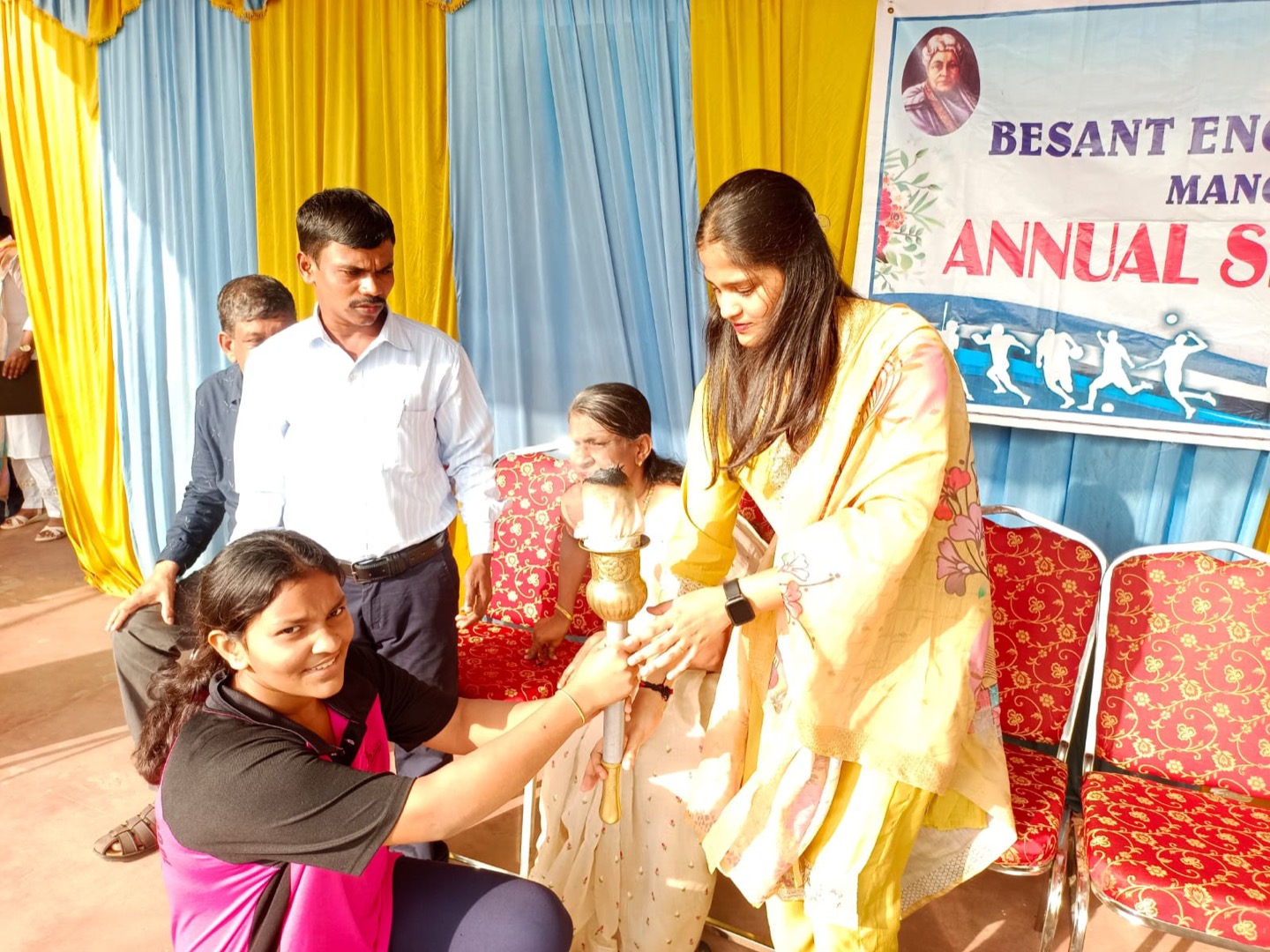 The Annual Sports meet of Besnat English School was held on 12th December 2024 at Mangala Stadium. The meet commenced with an invocation the chief guest of the day was Ms. Navya Umesh Moolya, National Volleyball Player. Inaugurated the meet by lighting the lamp. The Chief guest addressed the students and explained the importance of the sports. The correspondent of our school Dr. Manel Arjun Nayak and the Headmistress of the school Smt. Laveena Albert were present. Teacher Sharmila Rao was the M.C. Various events were held for higher primary and high school boys and girls. Medals and Certificates were distributed to the winners by our Chief Guest and the Correspondent.