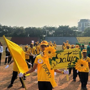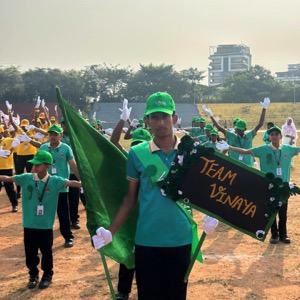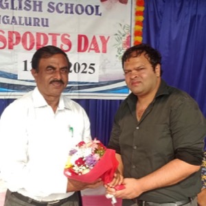 The chief guest, Mr. Bharat K, was honoured by the school management on this occasion. Mr. Ratnakar Rao B, the Assistant Headmaster, welcomed the gathering, while Mrs. Sowmya, teacher, proposed the vote of thanks. Mrs. Shikha, teacher, compered the programme, and Mr. Jagadeesh, Physical Education Teacher, coordinated the entire sports meet.