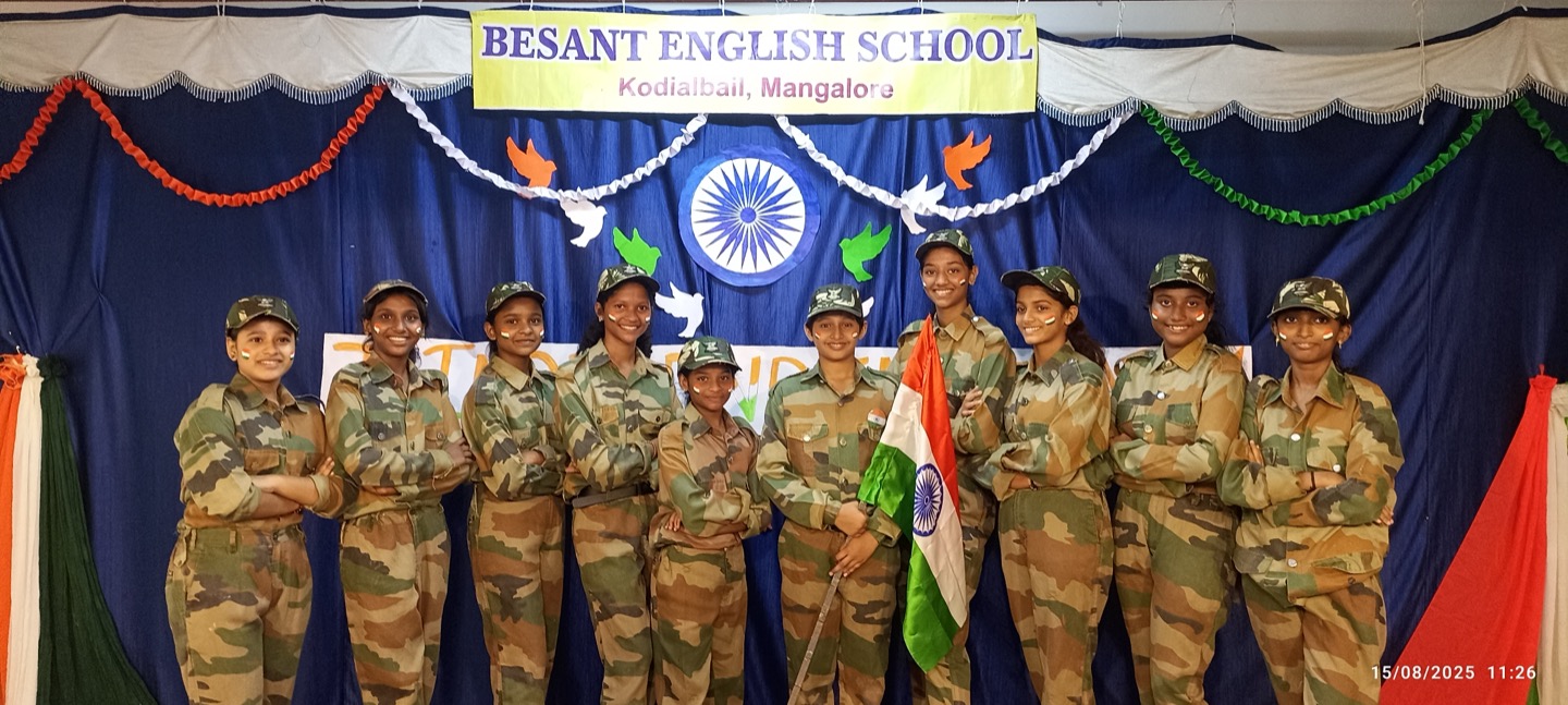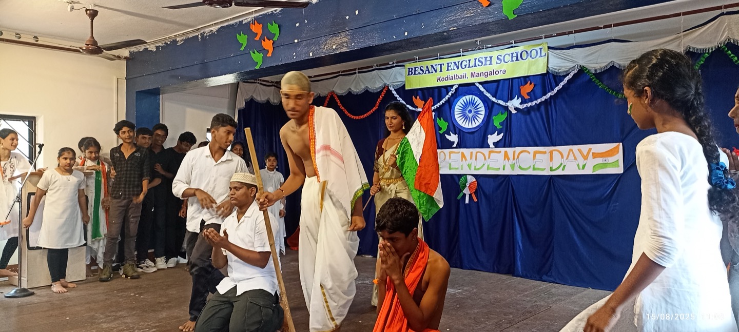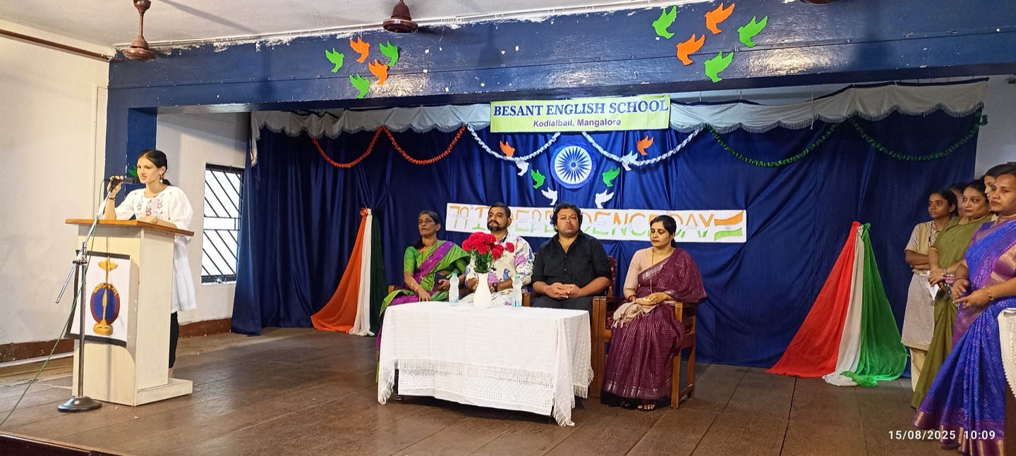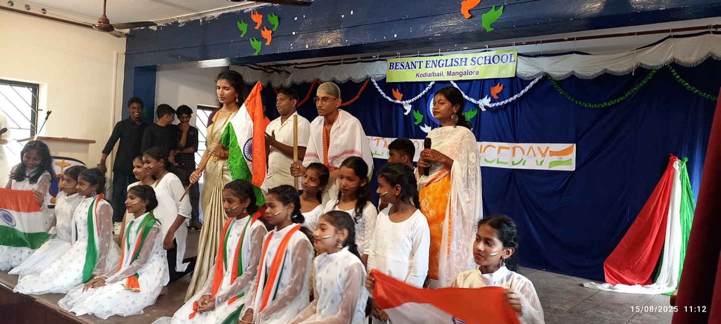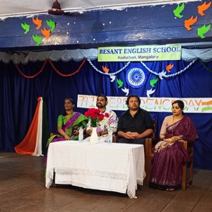 The independence day was celebrated in Besant English School with the enthusiasm and patriotic spirit. The programme was conducted by Kum.Vaishnavi as the master of ceremony. The celebration began with a solemn prayer , followed by a warm welcome speech. The occasion was graced by our respected correspondent Mr. Arjun Nayak , president Mr. Girish and vice president Mrs. Moksha .In his address Mr. Girish spoke about the significance of independence day and reminded everyone of the sacrifices made by our freedom fighters.This was followed by the distribution of merit certificates and prizes for the winner of the independence day competition. The cultural programme added colour to the celebration with patriotic dances by 9th and 10th standard students, a lively performance by the 8th standard students, and a skit highlighting the spirit of freedom. The event concluded with a heartfelt vote of thanks by expressing gratitude to all dignitaries, teachers and students for making the celebration a grand success.